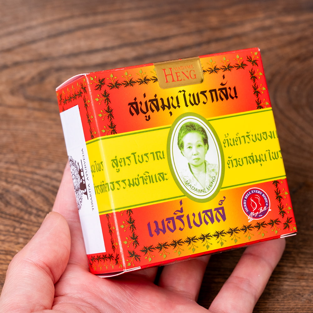 マダム・ヘンは、1919年にヘン・スイ・クン夫人が、Sang Rungブランドで自然派パウダーを作り始めたことから始まりました。このパウダーはスッとする清涼感のあるパウダーでしたので、酷暑期のソンクラーン祭りの時期に多く使用されました。その後、1949年にHENG SUI KUNG女史が「MERRY BELL BRAND」の石鹸を開発。その後、70年にわたりタイ国民に人気を博してきました。2003年には、石鹸だけでなく、ハーブドリンクや自然食品など、ハーブと自然由来の商品を扱う「Madame Heng Good Health Shop」をオープン。最初の店舗は、ゴールデン・プレイス・ラマ9世に近いプラディット・マヌーンタム通りにあり、商品の70%以上がハーブを使ったの石鹸と言う、タイでは数少ないお店になりました。