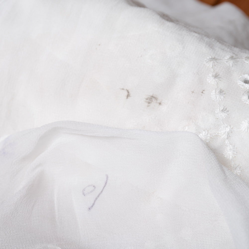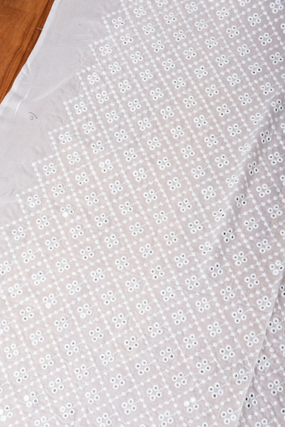 ホワイトがベースで、手をかざすと少し透けるシースルーなので、爽やかな印象のある生地です。