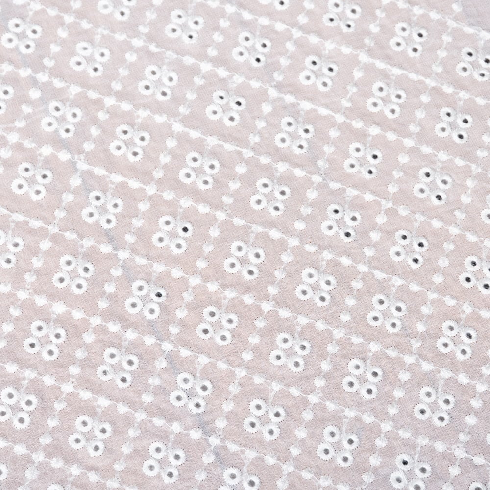 〔1m単位切り売り〕ミラーワークと刺繍入りメッシュ シースルー生地布〔幅約107cm〕 ホワイト x 3個