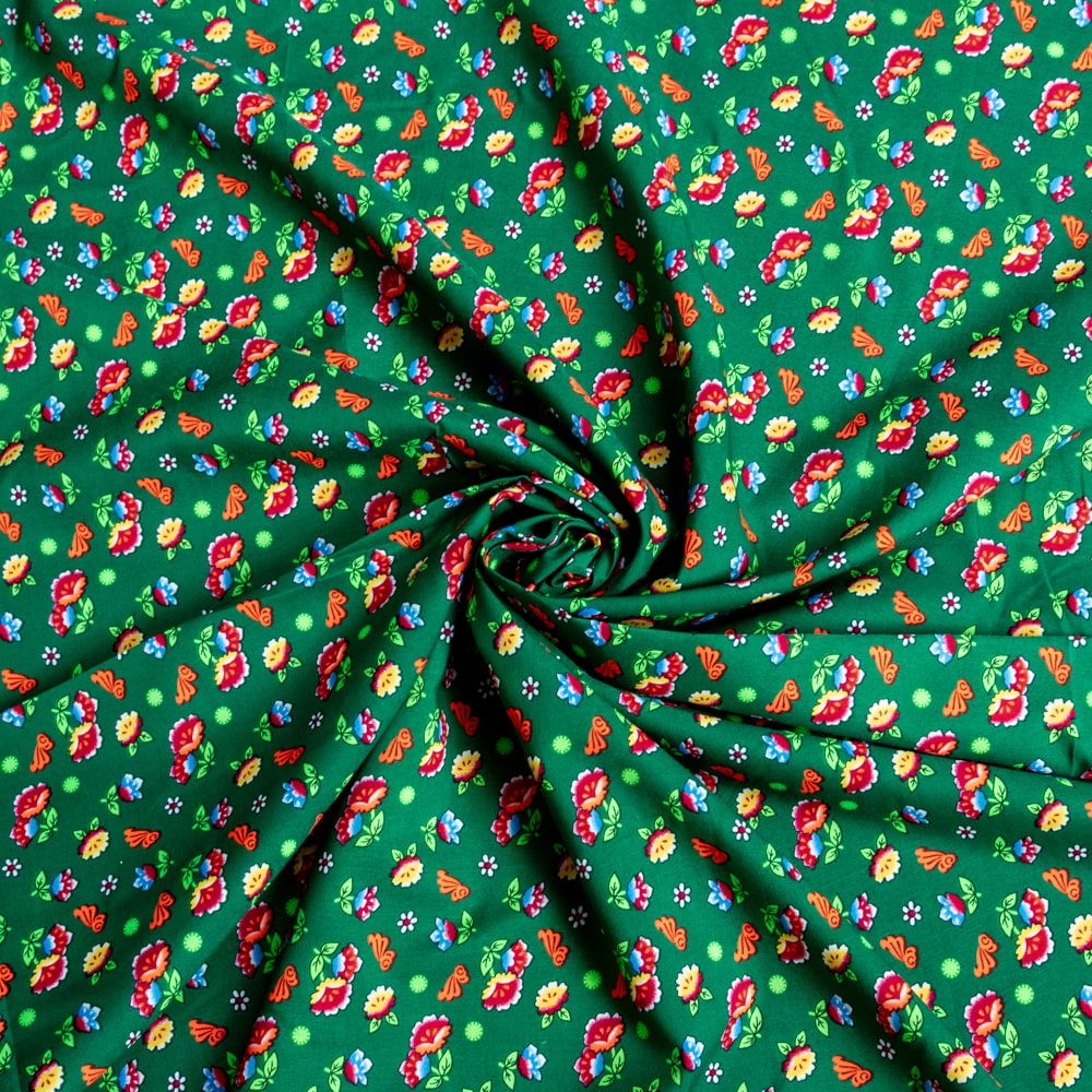 【5個セット】〔1m単位切り売り〕アジアのレトロ小花柄ファブリック ヴィンテージ風 昭和レトロ〔約130cm〕 - グリーンの商品写真