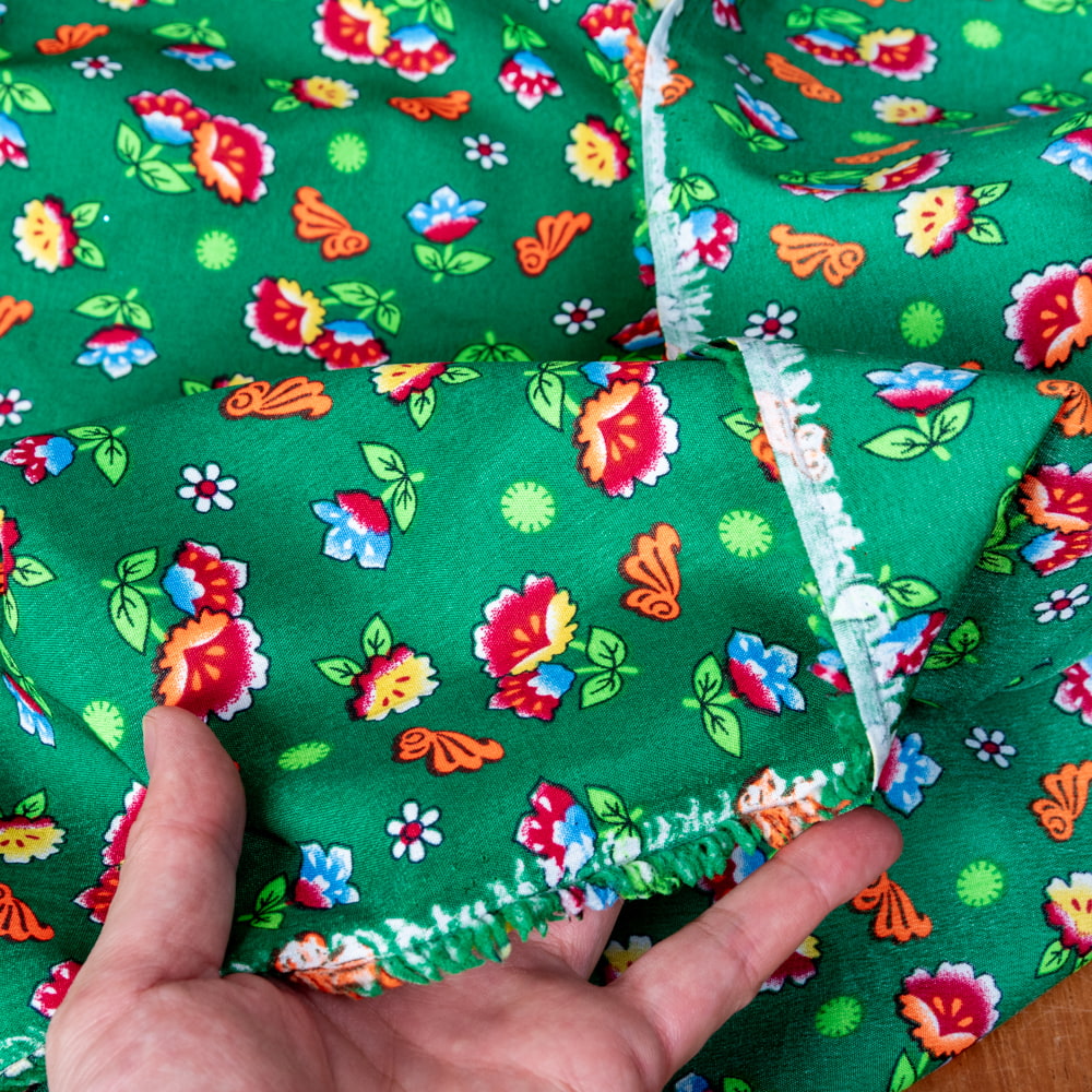【5個セット】〔1m単位切り売り〕アジアのレトロ小花柄ファブリック ヴィンテージ風 昭和レトロ〔約130cm〕 - グリーンの商品写真 8枚目 しっかりとした生地感です