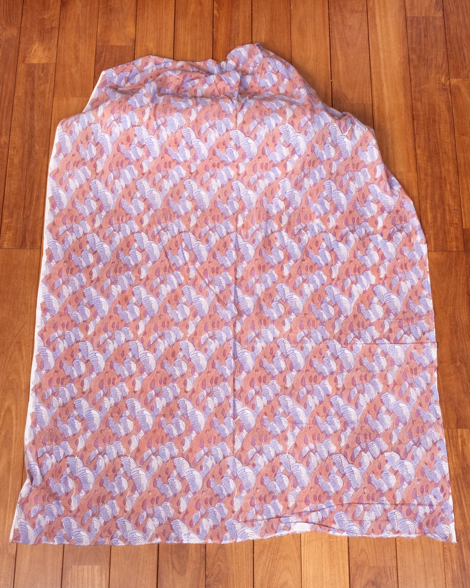 【5個セット】〔1m単位切り売り〕ジャイプル 職人手作り木版染め 色彩美しいボタニカルデザイン〔幅約110cm〕〔サーモン×紫系 波模様〕 おしゃれ 生地 テーブルクロス 手芸素材などへ