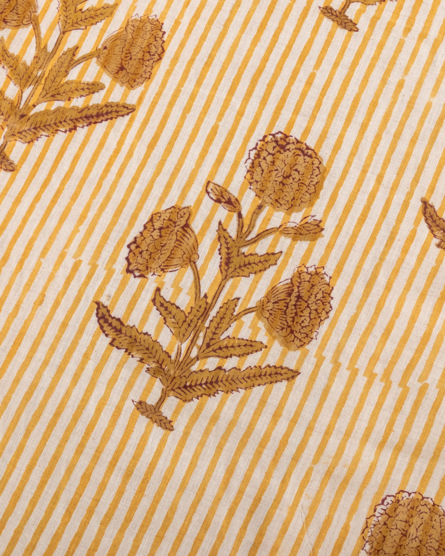 〔1m単位切り売り〕ジャイプル 職人手作り木版染め 色彩美しいボタニカルデザイン〔幅約112cm〕〔ベージュ×ブラウン系 花柄〕 おしゃれ 生地 テーブルクロス 手芸素材などへ x 5個