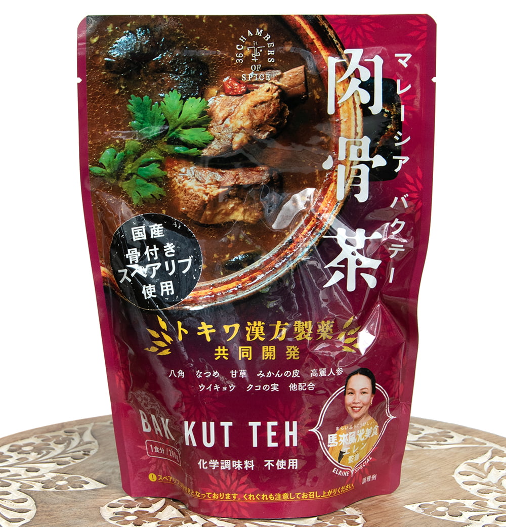 荻窪の老舗マレーシア料理店 馬来風光美食オーナーエレンシェフ監修。店舗人気No.1メニュー「肉骨茶」をレトルトで再現。国産のスペアリブを使用。