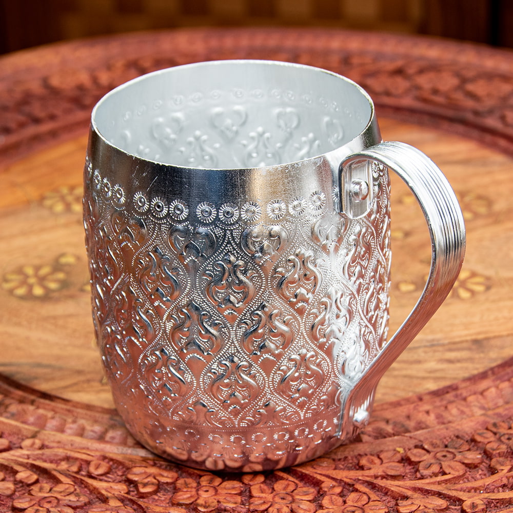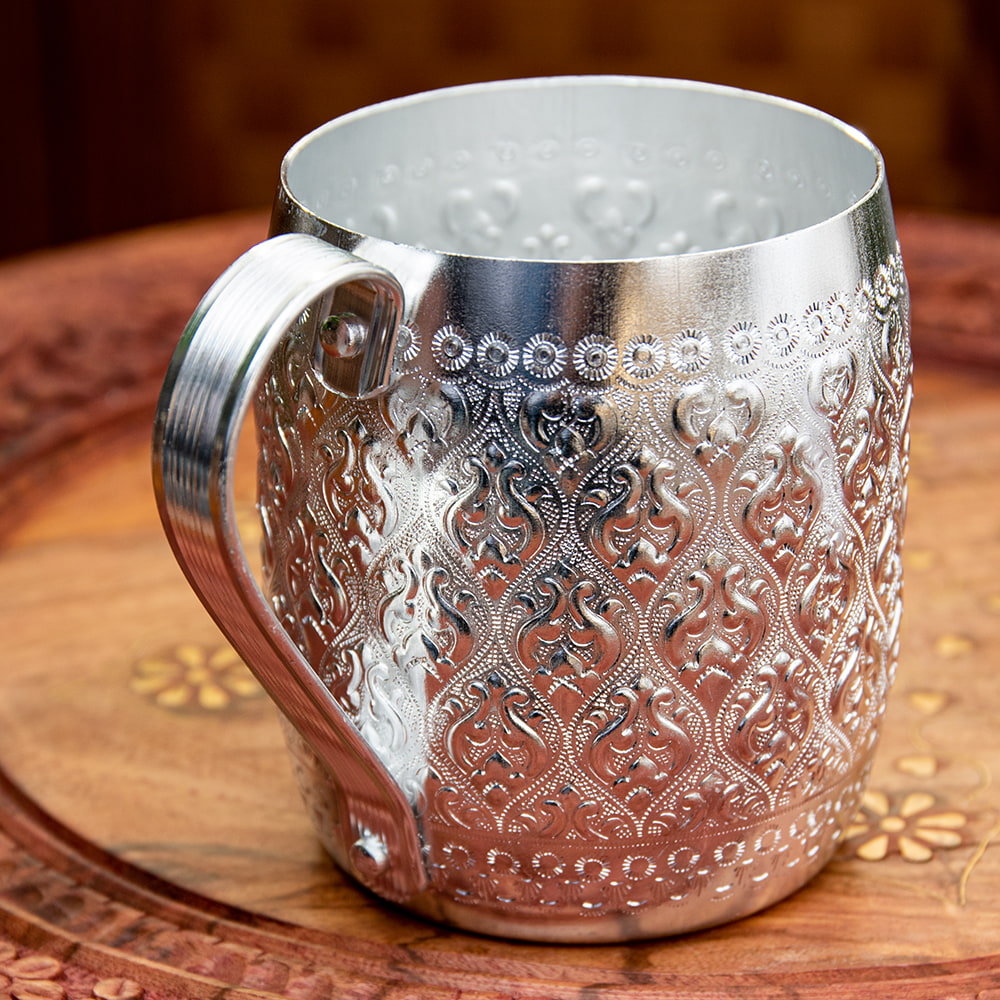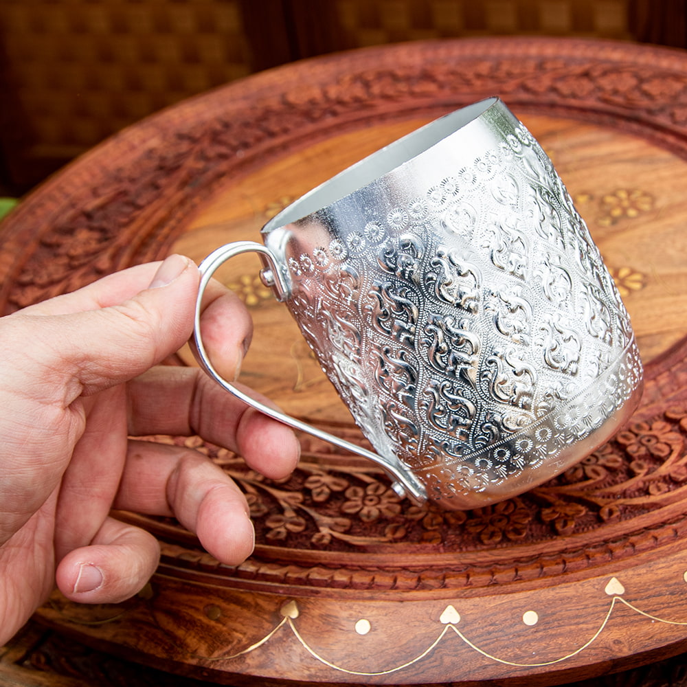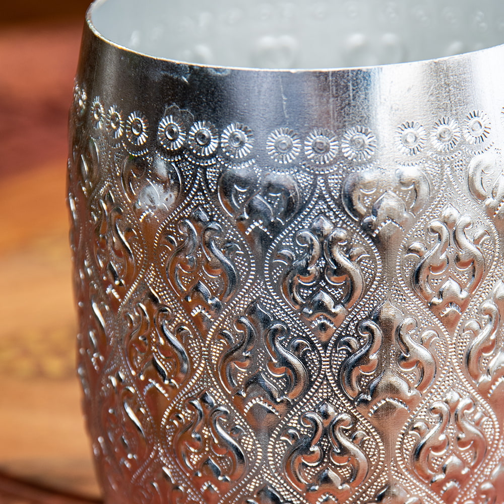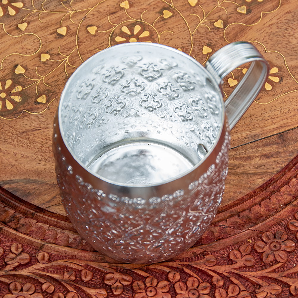 タイならではの美しい装飾がデコボコのエンボスになって入っている美しいコップです。光の加減でエンボスが輝き、とても存在感があります。