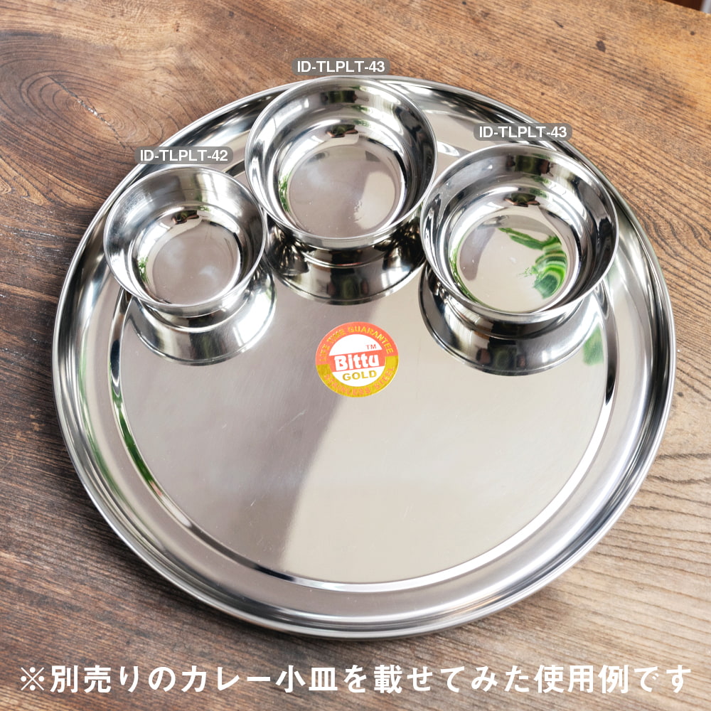 インドでカレーを食べるときに使うステンレス製の大皿。大皿の中にご飯を入れ、小皿の中に数種類のカレーを入れて使用します。インド風なおぼんとしてもGoodです。■便利な積み重ね型