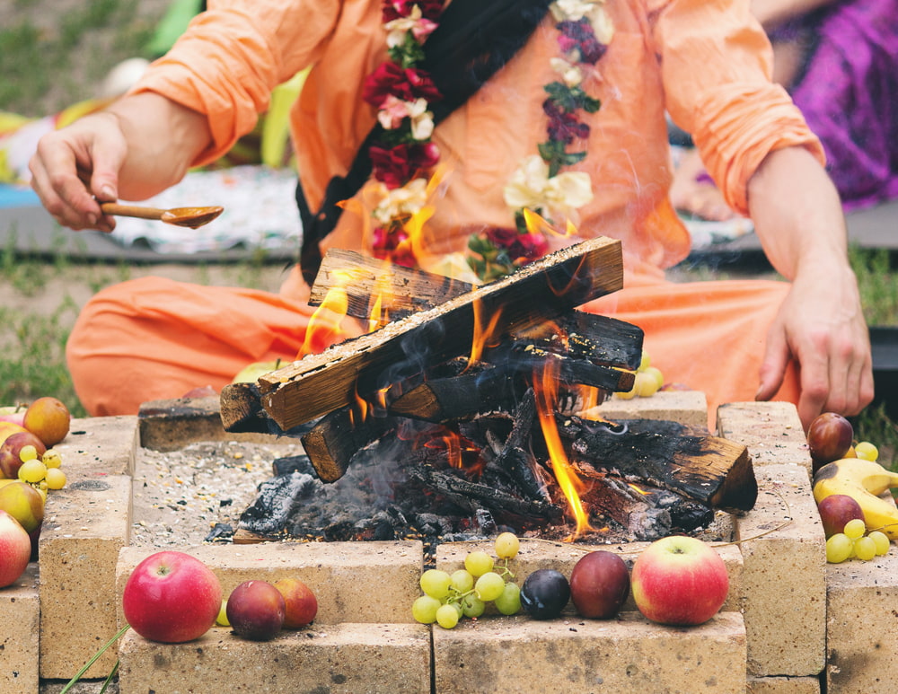 ヒンドゥー教の僧侶が特別な機会に行う、祭式を「ヤジュニャ(Yajna)」と言います。祭式の中で、特に重要なのが「ホーマ(Homa)」と呼ばれる、供物を火に焚べる行いです。