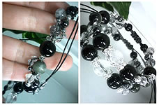 この糸と薄茶の糸を組み合わせて、天然石やビーズも加えて、ブレスやストラップを作ったんですが、ホントにかわいく出来上がりました!