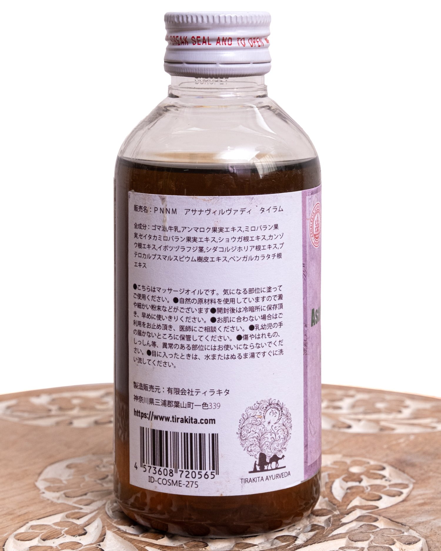 ![PNNM アサナヴィルヴァディ タイラム[Asnavilwadi Tailam 200ml] 2 - アーユルヴェーダの神様、ダンワンタリ神をモチーフにしたレトロなパッケージです](https://www.tirakita.com/cosme/Photos/id_cosme_275_2b.jpg)
