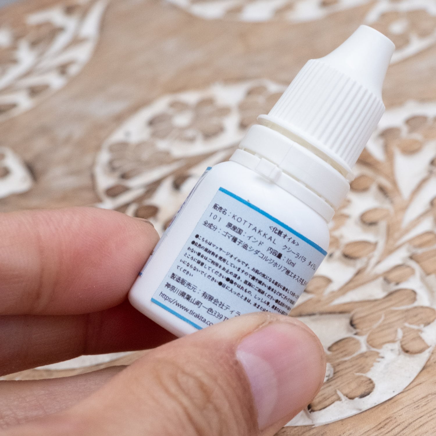 ![KOTTAKKAL クシーラバラ タイラム 101[Ksheerabala (101) 10ML] 4 - サイズ比較のために手に持ってみました](https://www.tirakita.com/cosme/Photos/id_cosme_317_4b.jpg)