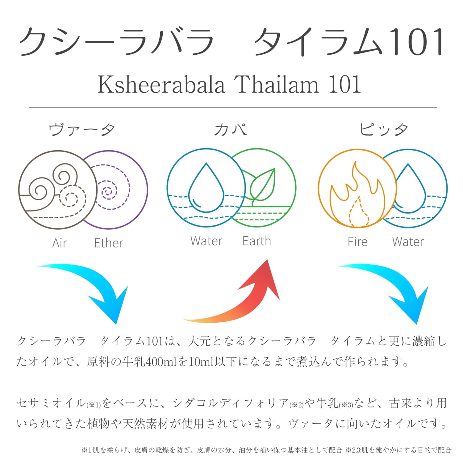 ![KOTTAKKAL クシーラバラ タイラム 101[Ksheerabala (101) 10ML] 2 - 古来より用いられてきた植物や天然素材が使用されているヴァータに向いたオイルです。](https://www.tirakita.com/cosme/Photos/id_cosme_317_2b.jpg)