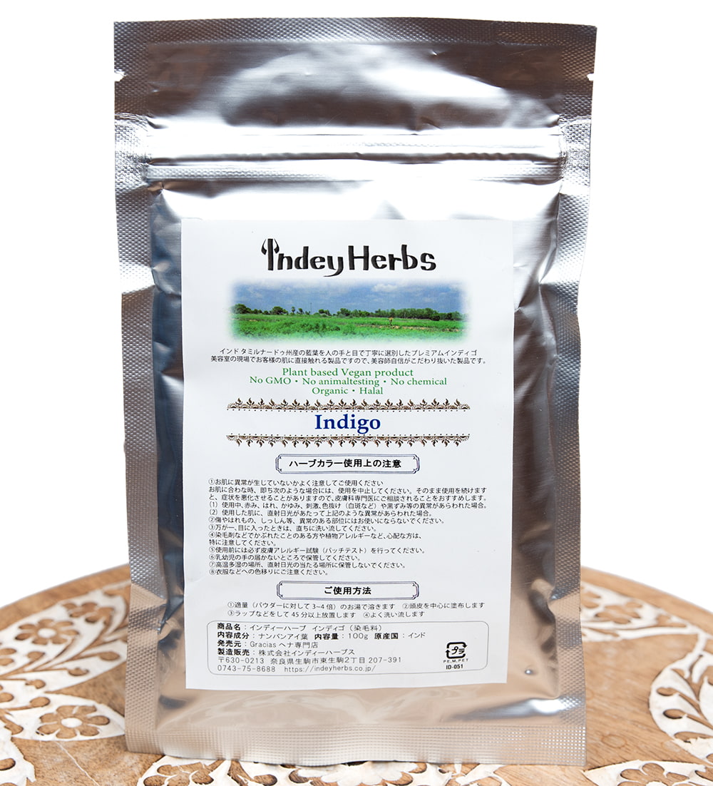 丁寧に手で不純物を取り除いた品質の高いインディゴ(藍)の葉のみを使用しました。 南インドで生産されたナンバンアイ(インド藍)は色素量が多いのですが、更に独自の製法を採用することで、最高クオリティーの製品に仕上げました。■美容師のこだわり