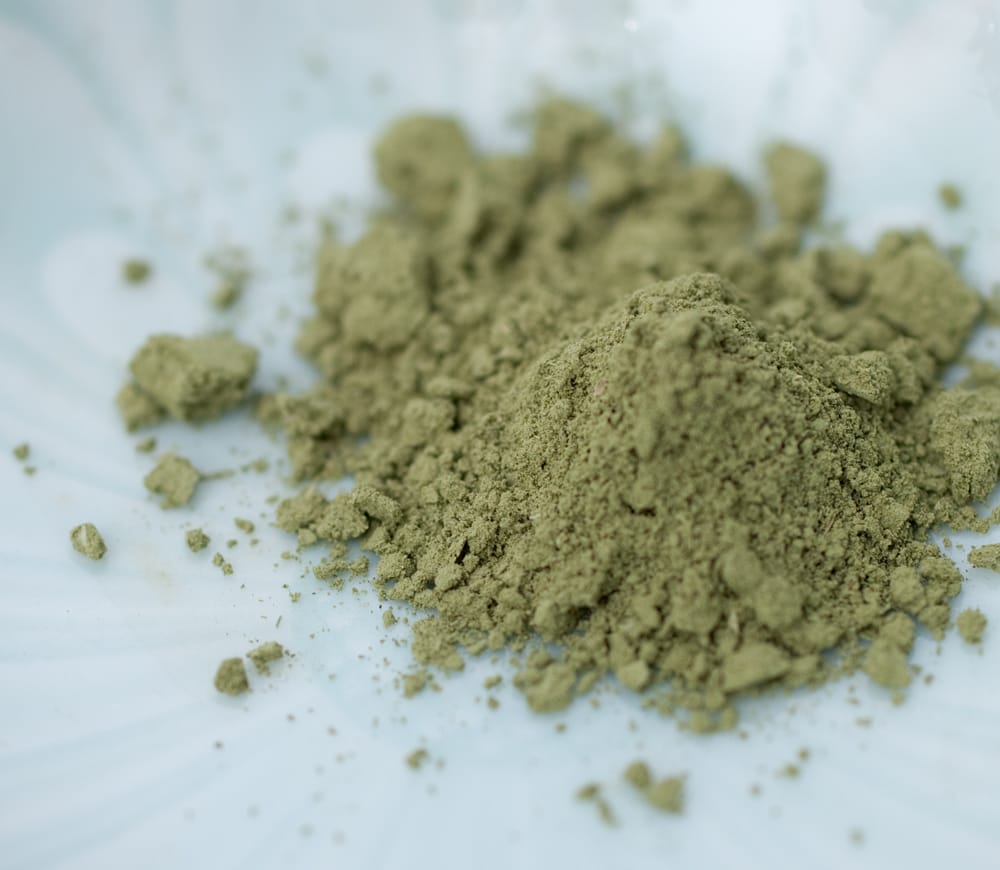 中のパウダーです。非常にキメが細かく、サラサラとしています。パッケージを開けるとふんわりと草のいい香りがしてきます