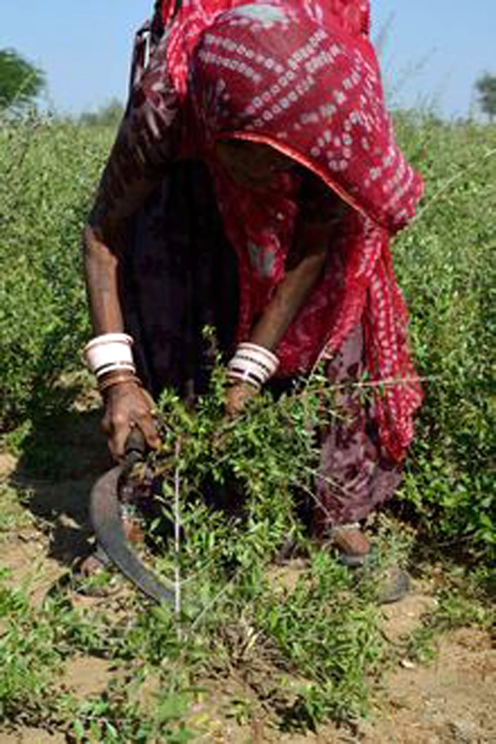 人の手でヘナを刈り取っています