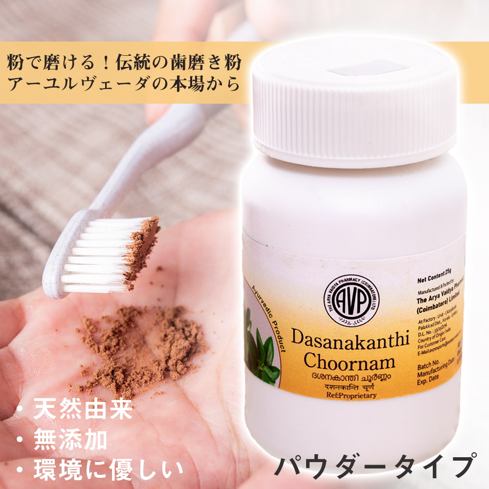 AVP ダシャナカンティ チュールナは、昔ながらのパウダータイプの歯磨き粉です。南インド・ケララで代々受け継がれてきた、アーユルヴェーダの伝統に基づき作られています。■天然成分由来で無添加が嬉しい