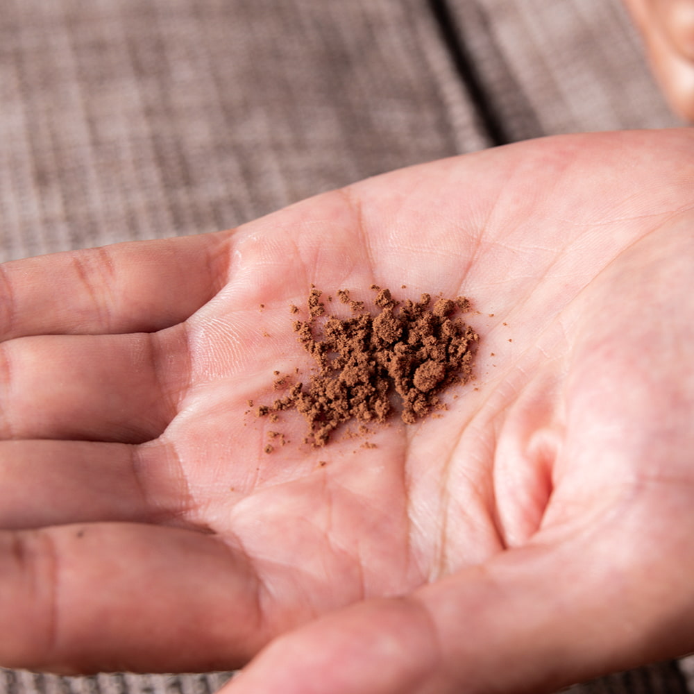 歯磨き粉の見た目は、細かいブラウン色をした粉末状で、見た目はまるでココアパウダーのようです。蓋を開けると生薬のような不思議な香りがしてきます。風味?も個性的ですが中には「美味しい歯磨き粉」という方もいらっしゃるようで、独特な香りと磨き心地が癖になりそうです。