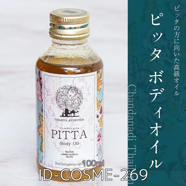 ![【6個セット】ティラキタ ピッタ ボディ オイル [PITTA Body Oil - Chandanadi Thailam] 100mlの写真](https://www.tirakita.com/cosme/Photos/id_cosme_269.jpg)