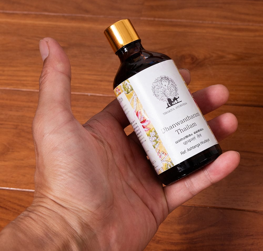 ![【6個セット】ダンワンタラム タイラム[Dhanwantharam Thailam 100ml] 5 - サイズ比較のために手に持ってみました](https://www.tirakita.com/cosme/Photos/set_cosm_159_5b.jpg)
