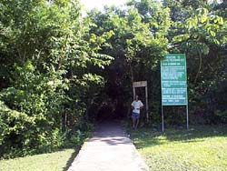 k日記ベリーズ編 99.10.12(火) ギラギラと容赦なく太陽が照りつけるサン・イグナシオ郊外の坂道を木陰を求めながら延々歩く。車が通ると真っ白になる未舗装の砂利の坂道に反れ、また延々と歩く。ふーふー言いながら、ふと後ろを振り向くと小高い山々とサン・イグナシオの緑多い町並みが一望できる。光を浴びた鮮やかな緑が雲の流れで変化するのがとても美しい。 カンペチ遺跡は、こんな小高い山の中にひっそり埋もれている。昔の人は、眺めのいいところが好きだったのだのだろうか? 博物館で入場料を払い遺跡の入り口へ。博物館の裏手に入り口への道があるが、道の先に見えるのはうっそうとしたジャングル・・・道の終わりにぽつんと木のトンネルが口をあけている・・・遺跡入り口って書いてある。少し覗いて見ると獣道が奥まで続いてる。横を見ると森男の梅ちんはなんだかうきうきうれしそう。と、思っていると、「わーい、僕こういうとこ好き!」とスキップしながら私の手を引いジャングルの中へ。 うっそうと木が生い茂り、木々の間からほんの少し光が差し込む。ふと目の前に一本の蔓が見えてくる。見境のない梅ちんは、ターザンのごとく蔓につかまり、ぶら下がろうと足を宙に投げ出した瞬間・・・ボキ、バキ、ボキ、ズリズリ、ゴン、森中に響き渡る。蔓に身放されて、獣道に落下。この事件で仕事中だったと推定される、背中に6本とげがあるアリさん一匹がお尻をつぶされるなどの重症を負い、まもなく死亡。当の梅ちんは、腰とお尻の打撲とひじのかすり傷などの軽傷で済みました。アリさんごめんなさい。こんな、考えなしの梅ちんを許してね。 獣道をどんどん進むとぱっと木々が消え、広場と石の建物が見えてくる。広場を囲むように建っている。中央の階段を登って石のアーチをくぐると広場になっていて小高い山が見える。よく見ると山の上のほうは綺麗な石が組んである。これは、ピラミットだ。ピラミットを登ると裏手にいくつもの部屋に分かれた建物が見えるが、これは、王宮らしい。どれもこれも土を半分くらいかぶりそこに木々が生い茂り完全な形をしていない。修復中とガイドブックには書いてあったが修復している様子がない。これ以上の修復はしないのだろうか?かつては、ティカルを忍ぶほどだったとか・・・今は、ジャングルの中にひっそりと眠る。 雲行きが怪しくなってきたので急いで山を降りることに。向こうの黒い空に稲妻が走る。行きの暑さは何処へやら、肌寒いほどの風が吹き抜け、程なく雨が降ってくる。 梅ちんが昨日の日記を読んだらしく今日も中華料理。雨が落ち着いたころ昨日の中華料理屋に向かう。夢にまで見たロブスターラーメンをジャッキーチェンの映画を見ながら食べるが日本のラーメンとは程遠い。でも、スープはとってもおいしかった。腰が痛いと嘆いている梅ちんを横目に満足満腹で一日を終える。 |