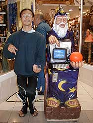 k日記ブラジル編 2000.9.6(水) 午後1時:9時にセットした目覚ましに全然気がつかなく、目が覚め時計を見てびっくり。寝過ぎでちょっと頭がぼっとする。 午後2時:ごはんと味噌汁と納豆の幸せな朝ごはん兼昼ご飯を食べる。 午後3時:ちょっと休憩した後、洗濯をして本を読む。うめちんは、パソコンをやっていた。 午後4時:ショピングセンターへ向けて、ペンション荒木を出る。地下鉄「サン・ジョアキン」駅から地下鉄に乗る。 午後5時:大きなショッピングセンターの中をUSBマウスを探してさまよい歩く。でも、なかなか見つからない。 午後6時:やっと見つけたUSBマウスはちょっと高め。どうしようか悩むが、結局購入。これで、指が痛くなるのともオサラバさ、へへン!! 午後7時:ショッピングセンターでお茶をして地下鉄に乗ってペンション荒木に帰って来る。早速、新しいマウスを使ってディアブロ。うん、指が痛くなくて快適。 午後8時:レベルが上がったので、先に進んで見る。だいぶ金持ちになる。 午後9時:ディアブロたのしいなぁ。あ、なになになにーあっという間に殺されてしまった。惨い・・・泣きながら街へ帰ってうめちんに(私のキャラクターで)道具を助けに行ってもらう。 午後10時:うめちんの「お腹空いたよー」の言葉に我に返る。遅い夕飯は、ごはんに味噌汁とナスの味噌炒め。 午後11時:美味しい玄米茶をすすって、一休み。そして、うめちんに救出してもらった道具を持って、再びダンジョンへ。 そして、日付変更。 |
