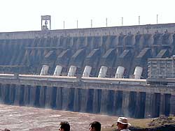 k日記ブラジル編 2000.9.28(木) ブラジルとパラグアイとの国境に両国共同で作られたイタイプーダム。世界最大の総出力電力1260万kWを出力できるのだそうだ。 ブラジル側の施設では、見学を無料で行なっていた。イタイプーダムの説明映画を見て、豪華なバスでダムの見学に出かける。パナマ川に大きなコンクリートの固まりが見事な曲線を築き上げていた。その横を白い飛沫を巻き上げながら轟々と唸りを上げて水が放出されていた。 このダムの権利は、両国で半々づつなのだがパラグアイ側は、出力電力の5%しか消費できず、残りの95%はブラジルに買ってもらっているのだそうだ。なんだかおかしな話だが、喧嘩が起きていないのでそれでいいのだろう。 こんなタダの見学をしているにもかかわらず、ダム建設の負債は2023年までメドが立たないらしく、そういうブラジルの心の広さには感心した次第。ダムもブラジル人もどっちもすごいなぁーと思った。 |