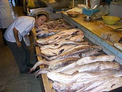 k日記チリ編 2000.1.3(月) 昼頃起きだし、街へ出る。中央市場が開いていたので覗いて見る。海産物が並んでいた。シーフードレストランがたくさんあった。「ウニ、カニ、ヒラメ、スズキ、アリマース」と客引きが寄って来る。「いくらですか?」と聞くと値段表の所まで連れていってくれる。値段を見ると日本で食べるよりはるかに安い値段(900〜4000ペソ約180〜800円)だが私達には出せない金額だった。丁寧に断ると、ニコニコして「マタ、キテクダサーイ」とあっさり引き下がって行く。 そんなやり取りを数回繰り返したが、結局、レストランでは食べないで、問屋で大きなアサリ1.5kgとほうれん草2束、アメリカンチェリーをたくさん買って自分で料理することにする。帰り際、立ち食いパン屋でエンパナーダと言うパンに挽き肉とたまねぎを炒めて餡状にしたものが入ったものとピザ一切れそれにダマスコス(アプリコット)のジュースを飲んで帰った。 アサリの砂抜きをしなければと鍋に水を張りアサリを入れて、部屋を暗くして街へ再び出る。 地下鉄に乗って観光案内所へ向う。チリの地図とインターネットの場所、それに南に向うにはどうしたら一番いいか聞こうと思ったからだ。地下鉄の切符を行きと帰りの4枚買い、改札をくぐる。メキシコ同様、札幌の地下鉄と同じタイヤ列車でひゅんひゅんひゅんと言いながらやってきた。 写真を撮って、乗りこむ。地下鉄は、暑かった。蒸し暑いといった感じがする。駅はどの駅も壁一面に絵が書かれたり、銅像など置いてあって感じがいいし、なんといっても危険な感じがしなかった。 観光案内所がある駅で降り、階段の向こうは夕方だと言うのに明るく太陽がさんさんと降り注いでいた。思わず目を細めた。夕方の日が眩しかった。 観光案内所で、サンチアゴの地図とインターネットの場所など聞き出したがチリのロードマップはくれなかった。「南に行くには、バスが一番安いけどテムコと言うところまで鉄道があって鉄道が一番安いわよ。そこから先はバスで行くしかないわね」と言われる。そうか・・・そういえば「地球の〜」にプエルトモンまで鉄道があると書いてあったなぁと思い、もう一度聞いてみるが、プエルトモンまでの鉄道はなくなってしまったらしく、今はテムコまでしか行かないらしい。「今までバスばっかりだったからなぁ。たまには鉄道もイイねぇ、しかもバスより安いから」と言うことで鉄道を使うことに決まった。 観光案内所をでて、とおしゃれな通りを次ぎの駅まで散歩する。どうやら、高級そうな家や店が並んでいる。売っているものも若干高いような感じがするが、相当センスが光る通りだった。 地下鉄に乗ろうと行きの駅で買った切符を自動改札に通すが受け付けてくれない。はて?なんでかしらと悩んでいると警備員のオジさんがやってきて切符を見て「これじゃダメだ、今の時間帯の切符を買わないと。これは、夕方6時までの切符だから」と言われる。サンチアゴの地下鉄は、時間によって料金が決まるらしく、朝夕のラッシュアワーの時間帯は料金が多少高くなる仕組みらしい。時間で料金が決まるなんて、知らなかったぁーー。と、渋い顔で高い切符を買い、あまった切符は後日使うことが出きるらしいので取っておくことに。 地下鉄で、そのままサンチアゴバスターミナルへ。バスの料金を調べ、その足で中央駅へ向う。地下鉄の駅1つ分の距離なので歩いて行く。道すがら露店や安売りの店を冷やかしながら散歩を楽しんだ。駅に近づくにつれて次第に街が綺麗になっていく。駅舎は、パリのエッヘェル塔の設計者が設計したものらしくアーチが美しい。それに合わせるように周辺の街並みを作ったように感じた。 駅で料金を確かめ、予約を入れようと切符売り場に向ううめちん。ポケットを探ってきびすを返したかと思ったら「だめだ」の一言。どうした?と聞くと「宿にもどんないと、金がない」ああ、そうですかと言って駅を出る。スラれるのが嫌なので小額しか持っていなかったのが仇に出た。でも、明日もこればイイよねなんて言いながら地下鉄は高いのでバスで帰ることに。ぶんぶん走るバスをようやく捕まえ、モネダ宮殿の前で降りる。たぶん、相当遊んだので、夜7時を廻っているのではないかと思うのだが、まだまだ明るかったし、商店も商いをしていた。人もたくさん行き来しているし、感覚的にはまだ昼の2〜3時くらいの様に思えてならない。 明るい内に宿に帰り、夕飯を作ろうとアサリと野菜を持って台所へ行くと、たくさんの外人がいた。この宿には、こんなに人がいたのかと思うくらいたくさんいた。場所を確保して料理を始めて3分、みんなが使っている言葉が英語じゃないことに気がつく。聞いていても何を言ってるか分からない。喉から「カッ」とか「カハッ」とか変な発音が混じっている。うめちんは、気がついたらしくははぁーと言っている。「何処の人さ?」と聞くと「お髭の長いオジさんの