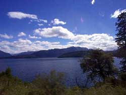 k日記チリ編 2000.1.8(土) これから、長旅が始まる。プエルト・モンを朝10時30分に出発して、プンタ・アレーナスに到着するのは、明日の夕方らしい。30時間を越えるバス旅だ。 バスターミナルで待っていると、やけに浅黒い日本人らしき人が1人いた。声をかけると、やっぱり日本人だった。南国からイースター島経由でチリにやってきたと言う。道理で浅黒いわけだと思ってしまった。そして、プンタ・アレーナスに行くと言う。ふと見るともう一人日本人らしき人がいる。声をかけるとやっぱり日本人だった。みんな同じバスチケットを持っていた。 プンタ・アレーナス行きのターミナルに綺麗なピンクの線が入った大型バスが入ってきた。日本で走っている綺麗な観光バスだった。バス会社のオジさんが「プンタ・アレーナス」と叫んでいる。もしかして、あれ?目を疑った。一番安いバスを選んだのに・・・本当にこのバス?半信半疑で乗りこむと、ちゃんと動く豪華なリクライニングシートにトイレ、テレビ、エアコン、ライトなどちゃんと着いていた。これは、快適かも・・・とホッとする二人でした。 時間通りに出発した。バスは、一旦テムコ方面へ戻り途中のオソルノと言う町でアルゼンチン側に進路を取り、そのままチリを出国してアルゼンチンへ入国し大西洋にぶち当たるまで直進。海にぶち当たったら、進路を南に取りひたすら南下し、再びチリに入国し目的地へ。どうして?と聞くと「チリ側には、南下する道が途中までしか無いんだよ。だから、アルゼンチン側を通るんだ」なるほど。「じゃあ、なんで一旦、大西洋に出るのさ。大回りじゃないこのこのルートだと。チリとアルゼンチンの国境付近のこの道を使わないの?」と地図を見ながら聞いて見る。すると「その道は、イイ道じゃないんだ。結果的にこっちを通った方が早く着くから」と言うお答え。そうですかぁとうなずいた。 快適バスは、とっても快適だった。国境では、出入国を手伝ってくれ、国境で待っているときにはコーヒーが出てきた。ひまになると飴が配られ、夜になると映画放映までしてくれた。寒いと言うと毛布をくれ、眠いというと枕をくれた。それどころか飯どきになるとサンドイッチとコーヒーがやってきた。運賃が安いのにこんなにサービスがいい。その代わり、夕飯とガソリンスタンド、あと国境以外はすべてノンストップで何処にも止まらず。缶詰バスだったがとても満足だった。 チリを出国すると景色が一変した。針葉樹の広大な森に険しいが美しい山々が見えてくる。緑色に澄んだ湖が針葉樹の間から見え隠れしたりする。そんな風景がしばらく続き、うっとりと車窓を楽しんだ。日が暮れる頃には、山々は赤や紫の衣をまといまた一段と美しく輝いていた。湖面に夕陽が反射して金色に輝いていた。次第に薄紫の空に変わり、山も湖も広大な森さえもすっぽりと夕闇に姿を隠してしまった。 ス・バ・ラ・シ・イ・ト・コ・ロ・ダ・ナ・ァ・・・ |