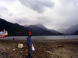 k日記チリ編 2000.1.31(月) 天気がいいので釣り曜日。そこそこ釣れたが、昨日ほどではなかった。釣りの途中で、日本から送ってもらったリールがイカレテしまったのだ。だから、引き上げるしかなかったからしょうがない。でも、今日もニコニコ顔のうめちんがいたので、良しとしよう。壊れたリールはどうしよう?また、治してみようか?と思ったが、釣り場で親切にしてくれた子供が釣り竿ごと売ってくれって言うので「竿は売れないけど、この壊れてるリールだったらあげるよ。自分で治せばまだ使えると思うんだけど、ほしい?」と言ってあげてしまった。大事そうに抱えて「ありがとうと」と言っていた。 あんなんでいいのかなぁ?と思ったが、まあいいかとバスに乗りこみ、一路釣具屋へ。これから、プエルト・モンは、アンヘルモで釣りをするためには、リールがなくては困る!!と言うことで、前からウィンドウショッピングで見ていた6000ペソ(1200円位)の激安リールを買うことにした。「サンチャゴで売っていたの、買う?」「うーん、もう一つのリールも壊れそうだしなぁ。考えておこう」結論は、先送りになった。ああ、釣り道具っていいなァ。魚が釣れれば、夕飯代浮くし・・・本当に送ってもらって良かった、よかった。 |