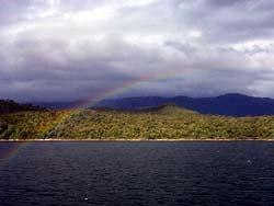 k日記チリ編 2000.2.2(水) 快適な椅子ベットで寝返りを打った時に、大きな窓から真っ赤に染まった空を見た。しばらく、薄らぼんやりそれを眺めていたが、いつのまにか真っ暗な世界に戻っていた。あれは、夢だったのだろうか?ぱちっと目が開いた時には、大きな窓に真っ青な空が広がっていた。 朝飯の後、操縦室を見学させてもらった。いろいろな機械やボタンがたくさん並んでいる。わくわくするうめちんもそこにいた。「船長椅子に座っていい?」と聞いていたがあっさり「ダメ」と断られてガックリしていた。 昨日同様、ホエーと景色を眺めていると昨日同様、陽気なチリ人が話しかけてくる。どうも日本人がいることが珍しいらしい。みんな、同じ質問を繰り返す。「何処から来た?」「名前は?」「旅行か?」「これからどこに行く?」「君達二人は、友達か?それとも兄妹か?」「そうか、ハネムーンか。結婚おめでとう」「日本は何処に住んでるんだ?東京か?」などなど・・・一人一人に笑顔で答える。 たまに子供がやってきては「これ日本語でなんて言うの?」「ドラゴンボールZって知ってる?」「僕と一緒に遊ぼうよ」とえらい早口でまくし立てられる。「もっとゆっくり言ってよ」と言ってもまだ早くて聞き取れない。で、その内ふいっと飽きて何処かに行ってしまう。台風のようだ。 船は、入江が狭いところに進んで行った。山が近くに見え、建物がポツラ、ポツラ見えてきた。そろそろこの船とお別れの時がやってきたようだ。甲板では、お笑い芸人がさようならパーティーをやっていた。プエルトモンは、アンヘルモ港を見ようと甲板に出た私達は、すぐにこのお笑い芸人に捕まり、チリ人達の笑いの道具にされたのは言うまでもなかった。 チリ人の前で、質問攻めに合い、しまいに坂本九の「上を向いて歩こう」を歌わされてしまった。小さなキーホルダーを握らされてやっと開放された頃には、船はすでにアンヘルモ港に接岸された後だった。 手早く荷物をまとめ、階段を降りて薄くらい鉄の壁から光の中に吐き出されたとき、プエルトモンは、暖かいなぁと肌で感じた。 アンヘルモを見ようと思ったが、荷物が重いので一旦宿に戻って見ることにする。宿に行くと、あーら帰ってきたわと結構冷たい対応。部屋はあるか?と聞くとあると言ったが、料金は一人4000ペソと言う。いくら交渉しても前泊まったときの値段にはならなかったのでプエルトモンに泊まるのを断念。預けておいた荷物だけ受け取って、サンチャゴにすぐ帰ることにする。 バスのターミナルで一番安いサンチャゴ行きのバスチケットを購入。うめちんはアンヘルモへ海藻を買いに出かけ、私は荷物番としてバスのターミナルで待つことになった。そして、時間ぴったりにバスは出発した。安いからぼろバスかと思っていたがそんなに悪いものでもなかった。が、それは、ちょっと間違いだった。 薄い太陽に薄い青空、そして薄いオレンジ色の夕焼けが微妙に混じって微妙な色合いでバスを照らしていた。黄金色の草原を、低い陽射しで作られた長い長い影バスがいっしょに走っていた。そして、いつのまにか影バスは長く長くなりすぎて何処かに行ってしまい、バスは暗い草原を走りつづける事になる。 2、3時間も走ったか、車中の電気を消され就寝タイムに突入した頃になると何処からともなくトイレ臭い風が流れてきた。なかなか眠れない上にそんな匂いが充満されたらたまったもんじゃなかったが、臭いのしない方向を探して眠ることに。幸い、バスはがら空きだったので2つの席を1人で占領して横になれた。うめちんは、体が大きいので悪戦苦闘していたが、結局座った体勢で寝ていた。 だいぶ寝慣れた頃、突然バスがぐわんと横に揺れたかと思ったら急にブレーキを踏んだらしくスピードが落ちた。思わず椅子から落ちそうになったが肘掛にしっかと捕まって難を逃れた。なんだったんだ今のは?と体勢を立てなおして、また寝に入るが、しばらくしてまた同じようなことが起こった。大方、運転手の居眠りかなんかだろう。とんだ安バスだと思った。その後、そんなことが何回かあったかもしれないが気がつかずに眠りこけていた。 都会に向けて休みもなく走りバスは走り続ける・・・ |