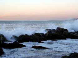 k日記チリ編 2000.2.11(金) ここの食堂には、たくさんの本が並んでいた。ここへ来た日にこの蔵書の数を見てとてもうれしくなり、疲れているにもかかわらず二人で朝方まで本を読みふけってしまったくらいだ。とにかく、いろんなジャンルの小説が壁一面に並んでいた。もちろん雑誌や新聞、漫画もあった。 それを、当たり前のごとくむさぼり読む二人・・・なぜか、食堂に入ると本を手にしている。そして、ふと気がつくと、青い空が色あせて、暖かかった風が妙に冷たく感じるようになると・・・イケナイ!!夕飯の買物!!と立ちあがる。市内観光もせず、一体、ここに何しに来たのさ?と疑問に思う。 |