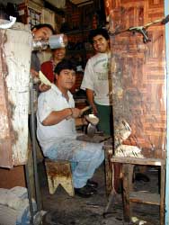 k日記チリ編 2000.2.17(木) まだ、外は暗かった。やはり、肩をゆすられ目が覚める。どうやら着いたらしい。バスを降りるとまたもや道路際。バスターミナルで降ろしてくれって頼んだのに・・・無常にも荷物を放り出され、足早に走り去るバス。そこにはタクシーの運転手だけがいらしゃいとニコニコ顔で出迎えてくれた。ここは、本当にラ・セレナなのか?遠くに大きな広場と光が見えた。よく見るとバスがたくさん停まっている。ああ、あれがバスターミナルか?何故、バスターミナルの中で降ろしてくれなかったのか?つくづく疑問が残るバス会社だった。タクシーの運ちゃんの勧誘をうまく交わしながらターミナルへ向う。看板を見るてラ・セレナには間違いなさそうだと確認。時計を見ると朝の7時ちょっと前、辺りはまだ暗闇だ。夜が明けるまでターミナルの中で眠ることにする。 窓を開ける音で目が覚める。陣とっていたバスチケットブースが開店するらしかった。辺りを見回すとほとんどのバスチケットブースがすでに開いていた。ここでは、ピスコの工場を見学できると言うので寄っただけなので、早速、一番安いカラマ行き夜行バスチケットを購入。荷物を担いで街を歩こうかと思ったが、クロークが案外安かったので預けて出かけることにする。クロークで、預かり証を参枚と領収書を貰って荷物を渡しお金もついでに渡した。そして、タクシーで街へ出かける。アルマス広場の前でタクシーを降り、お金を払おうとポケットに手を突っ込むうめちん。突然「ああ、アレー?」な、なんだ?とびっくりしてしまった。「なんか、俺、クロークでお釣り貰ってくるの忘れたらしい・・・」なななにー!!いくら出したの?「5000ペソだから3500ペソのお釣り・・・」顔が情けない顔になってる。たぶん、今からバスターミナルに帰ってもお金は返ってこないだろうなぁと思った。まあ、気を取り直して、レコバ市場に向うが朝が早く開いていない。近くのエンパナーダ屋さんでエンパナーダを1つ320ペソで購入。ふと横の店を見ると300ペソで売っていた。それからピスコ工場に行くが1時間ほど待ってくれと言われ、工場の待合室で寝ながら待つが一向に見学が始まらない。やっと、案内してくれた工場は、月1度の清掃日でマシーンは作動してないし、大した説明もないまま写真を撮って追い出された。 その足で、レコバ市場を覗く。2階の入り口近くに靴の修理屋さんが並んでいた。そう言えば、私の靴底が擦り減って、水がしみてきて困っていたので治してくれと頼むと30分ほどでさっと治してくれた。ただ、茶色い靴底が真っ黒に変わり、コールマンの靴ではなくなったが・・・これで水がしみてこなければ安いものだと思った。レコバ市場はお土産市場のようだった。ありとあらゆる民芸品が並び、歩く場所もないくらい人があふれていた。そんな中を歩いていてまたもや不幸な事件が起こった。ある店でかわいい豚の貯金箱が飾ってあった。それを取ろうと手を伸ばしたうめちん。あ!!と思った瞬間!!ガシャー−ン。すごい音と共に石のみやげ物の上にうめちんの手をすり抜けてカメラが落っこちた。一瞬何が起こったの?と、微動だにしなかったうめちんとその場にいた店員。我に帰り、カメラを拾い、壊れていませんようにと祈りながら、手早く石のみやげ物を見る。ああ、ガックリ。1つだけ壊れていた。こんなもの買いたくはないが、しょうがない。店の店員も哀れんで安くはしてくれたものの、とんだ災難だった。 クロークのお釣りといい、さっきのみやげ物といい、今日はうめちんの災難続き。すっかり落ちこんでしまっている。 昼ご飯時、ホットドックを食べていると、少年の物乞いがやってきた。いつもは、お金をあげないだが今日は、厄を彼に上げると言うことで20ペソ程あげてはどうだいとうめちんに提案。早速、20ペソに厄を付けて彼に渡すと感謝されてしまった。これで、厄もすっ飛ぶだろう。 何もすることがなくなったのでターミナルに戻ることに。あたって砕けろで、クロークにお釣りを貰い忘れた旨を言って見ると、朝の係員に電話して聞いてみようとなんとも親切な対応。しばらく待っていると、3500ペソ持ってやってきた。「なんか、じいさんボケてたみたいで・・・お釣り渡すの忘れてたみたいだ。申し訳ないな」と奇跡的にお釣りが帰ってきた。物乞いの彼に厄をあげたから、運が廻ってきたんだよと喜ぶうめちん。 定刻にバスは出発した。眩しいほどに夕陽がバスに差し込む。海沿いの道をひた走り、そして日が沈み、暗闇が訪れる。暗闇に青白い月の光がやさしく降り注ぎ、辺りを美しく映し出す。 |