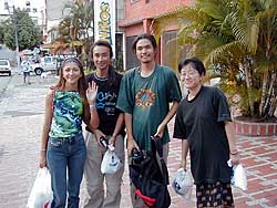 k日記コロンビア編 2000.6.19(月) エンジンオイルが漏れるという現象を仮に直してもらったので、試運転。みんなでショッピングセンターに向かう。セントロから一番遠いショッピングセンターは、駐車場もでかく建物も大きい。ありとあらゆる物が売っていた。ただ、物価の安いエクアドルから上がってきた私達。とても手が出ない値札にただただ唖然。夕飯の買物だけして帰ってきてしまった。エクアドルで壊れたケチケチレジスターは、一気に直ってしまったのだった。 車の方はというと、応急で直した所からまたまたエンジンオイルが流れ出してきていた。これって、直るのかな? |