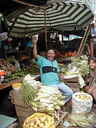 k日記エクアドル編 2000.5.4(木) 蒸し暑い・・・夜行バスは寝苦しいバスに変わっていた。外が、薄明るくなり始めたころ、どんよりとした雲が空を覆い雨が降ってた。荒れた湿地の草原に茶色の川が流れている。そして、大きな大きな茶色の川が現われた。緩やかな流れの中を1艘の船がゆっくりと進んで行く。遠くに鈍い光の束が見えた。バスの助手君がチケットを回収にやってきた。もうすぐ、グアヤキルだと・・・ グアヤキルのバスターミナルは大きかった。しばらく、ベンチに座りボーとする。これからどうしようか?なにも見る所がないグアヤキルに一泊する?名物のマングローブカニ食べに行くしか能がないね。なんて考えてたらめんどくさくなっしまった。 「・・・このまま、海に、リゾートに抜けちゃおうか・・・うん、そうしよう」早速、チケットを探しに行くうめちん。エクアドルッ子のリゾート、マンタと言う所に行く事に決定。すぐ、バスが出ると言うので急いでバスに乗りこむ。グアヤキル、バイバーイ!! 競争相手がいないバスはすこぶる速かった。本当に恐い速度で緑の生い茂る、田舎道をぶっ飛ばす。時折、昇降のためにスピードを落とすが、停まりはしない。みんな、駆け足、飛び降りスタイルの命がけ。さすがに年寄の乗り降りだけは、ちゃんと停まっていたけど・・・ すえた潮の匂いと共に街が見えてきた。あれがマンタだと言う。ええ、これがリゾートですか?と聞きたくなるようなドブ臭さと汚い町がそこにあった。白い砂浜に青い海を想像してきた私達。「なんだか、間違っちゃったみたいだね、うめちん」ガックリである。このまま、違う所に移動しようとも思ったくらいだ。でも、またバスに乗るのかと思うとどっと疲れが押し寄せ、足はホテルに向かっていた。 ホテル街は、海の近くにあった。どこもかしこもドブ臭く街は汚かった。市場が近くにあり、多くの警官が歩きまわっている。食事をしようと市場をうろついていた私達の跡を警官がずっとついて来てくれた。結構、危険な所なのかもしれないと思った。丁寧にお礼を言って市場を後にした。 海岸に出ると、あの臭い海で泳いでいるエクアドル人を発見。ビーチボールしている人もいた。正直、驚いた。この汚さと臭さが気にならないのか???ここって本当にエクアドル的リゾートだったんだと頭を打たれた感じだった。 明日には、必ず、ココを去ろうとうめちんと誓った。 |