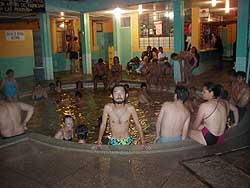 k日記エクアドル編 2000.5.21(日) エクアドルに来たら、バーニョへ行ったらいいと思う。いや、行った方がいいの方が正解かもしれないほどいい所だった。何がいいって、バーニョには、地名の通り、熱い温泉プールと冷めた温泉プールがあって、冷めた温泉プールにはウォータースライダーがついていて楽しく遊べるし、熱い温泉プールは、夜の10時までやっている。しかも、プールの裏にある滝がライトアップされお湯につかりながら眺める滝はとてもみごとだ。 良く言えば、そこらへんにある温泉旅館の露天風呂より豪華だと思った。宿もUS2ドルも出せば、ケーブルテレビにシャワートイレ付きの清潔で綺麗なホテルに泊まれるし、バスターミナルから4時間程の行程なので、ぜひ行ってみるといいよ。 |