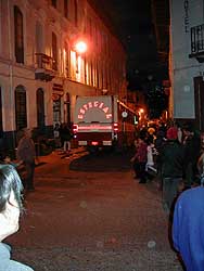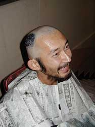 k日記エクアドル編 2000.5.26(金) キトから北へ数キロの村オタバロに行った旅人が、オタバロの宿でカメラを盗まれてキト中カメラを探し回って歩いていた。でも、なかなかいいカメラが見つからなく困っていた。別の旅人が「泥棒市には、カメラが安く売っている」と言うので、ついて行ってみる事にした。 トロルのマリン駅周辺にガラクタをたくさん並べた露店が数件並んでいた。「ココが、泥棒市かな???」と思うほどの品揃え。でも、取っ手が欠けた掃除機や映りそうもないテレビや何か電気製品も部品にまぎれて、某有名メーカーの一眼レフやWindowsCE機、小型のビデオカメラなど日本製掘り出し物がちらほら見え隠れしていた。だが、さすが泥棒市。動かないものが大半で、キズなども平気でついている。でも、探せば動くものもある。 取りあえず値段を聞いてみると平気でメーカー希望価格に近い値段を言ってくる。「あ?そんな値段だったら日本で新品買うわい」と言うと少し値段が下がるがそれ以上はガンとして安くならず、終いには「お前には売らん!!」とまで言ってくる始末。 結果的にいいカメラが無かったので何も買わなかったが、ココで買うなら他で買うと言う結論に達してしまった。今日は、日本製の電化製品なんだから、値段知らないわけない私達、日本人にふっかけてくるエクアドル人って面白いなぁとおもったね。 夜、みんなで中華料理を食べに行った。その、食卓で思わぬ発言がライダー青山さんの口から出てきた。「俺、やっぱ坊主にしようかな、・・・うん、坊主にしよう」一同「えーえーえーほんと?」「うん、ホント」いや、昨日の夜、「禿げが気になるんだったら、いっそ坊主にしてしまえば、丈夫な毛が生えてくるよ。なまじ長いと毛根が弱るし、髪の毛の先まで栄養が行き渡らないと思うんですよ。だから、全部剃ってしまえば良いんですよ」なんて、青山さんにみんなで説いていたけど、本当に剃るって言うとは・・・でも、全員一致で賛成。早速、宿に帰って準備を始める。椅子に真ん中をくりぬいた新聞紙にたくさんの水とはさみにかみそり、せっけん、そして、タオルに青山さん。準備完了。 青山さんを椅子に座らせ動けないように固定。真ん中をくりぬいた新聞紙を青山さんの首にはめる。有無を言わさず、中央の長い髪の毛をはさみで切り、中央の5cm程だけかみそりで剃ってみた。・・・まるで落ち武者のような青山さんの出来あがり。一同大爆笑。「早く、全部剃ってくださいよぉ」と叫ぶ青山さんをよそに次の段階に進む私達。 てっぺんから少しサイドの所を丸くと揉み上げだけ残してすべて剃る、剃る、そる・・・みんな、爆笑、爆笑、知らない青山サンは「ちょっと、何やってんですかぁー、早く全部剃ってくださいよ」そんな叫びは耳に入らない私達。いつのまにか「円形発毛症」が出来あがっていた。「ああ、髪の毛剃るの飽きたねーーー」なんて言いながらその部分を残して剃るのをやめてしまった。「ええーー、全部、剃ってよぉ」叫ぶ青山さんをよそに片付け始まる私達。結局、そのままで1夜を過ごす羽目になった青山さん。風邪引かないでね。 |