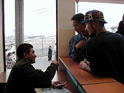 k日記エクアドル編 2000.6.5(月) ツーリストが本当に車を買えるのか?すごい疑問だ!!買えると言う人もいれば買えないと言う人もいて、真相が掴めない。じゃあ、エクアドルの陸運局らしき所に聞きに行こうと言うことで、バスに乗ってエクアドル陸運局らしき所へ。 バスを降り、延々伸びる坂を登るとコピ−屋に写真屋に書類代行サービスなど日本と同じような光景が見えてくる。そして、門をぴっちり閉めた陸運局らしき所発見。警備員に「ココは、車の登録をする所ですか?」と聞くと「そうだ。でも、今、昼休みだから、3時過ぎにまた来てくれ」と冷たく言い放たれる。ええ、3時ってあーた、まだ12時くらいでしょ?ねえ、話し聞くだけだから、お願い入れてと頼んでも、ガンとして譲らず「3時にまた来てくれ」ばかリ・・・しょうがないので、先に別の用を先に済ますため、セーセーイ−まで戻る事にする。 そして、午後3時。トロルとトロルバスに乗って、再び先ほどの陸運局へ。先ほどと違ってすごい人だかり。ものすごい行列があちこちの窓口に出来ていた。 さて、どこにいけば・・・見まわすとインフォメーションの看板を発見。聞いてみる。すると「隣のビルのライセンス系のセクレタリアに行け」と言うのでそこへ向かう。 そして「私達、ツーリストなんだけど、車買っちゃったんです。ツーリストでも登録できますか?」と聞くと「問題ないよ」と簡単に答えた。「国際免許証持ってる?」「それは、もちろん」「じゃあ、そこのカウンターで書類を書いて、あと、その運転免許証のコピーがあればいいから」な−んだとっても簡単だった。ものの数分で終了。 宿に帰ると、ホテルスクレの従業員カルロスが「今日、裁判所で聞いてきたんだけど、売買契約書ってのがいるんだ。でも、ツーリストには出してくれるか分からないし、車検証が欲しいと思うんだ・・・車買えないかも知れないよ」 へ、そうなの?そんなの聞いてないよ。とにかく、車の持ち主に電話。車検証は、車の持ち主が持っていた。問題は、売買契約書だけなので、明日、車の持ち主と一緒に裁判所に行ってみようと言う事に。本当に私達の車になるのだろうか? |