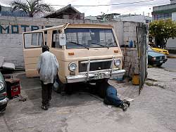 k日記エクアドル編 2000.6.7(水) マトリクラ。日本で言う車検証のようなものが車を運転するには必要だと、セグンド・バカが言う。1999年にセグンド・バカが取ったマトリクラがあるが、それを名義変更しなければ、本当に自分の車には、ならない。 マトリクラを持って銀行へ。名義変更の手数料を払って、陸運局らしき所へ向かう。 陸運局近く、快適に走る車の目に前に大量の路上駐車の車が見えた。そんなのも気にしないで、陸運局の駐車場に入ろうとした途端、警備員がやってきて「何か用か?」と聞くので「マトリクラを取りに来たんだけど・・・」「じゃあ、この列に並べ」と、先ほどの路上駐車の列を差す。 えーこれ、マトリクラの列だったの・・・こんなにいたんじゃぁ今日はダメじゃない???と思ったので、今日はあきらめてまた明日来る事に。 そのまま、整備工場に突っ込み、タイヤを替え、悪い部品を交換して、そのままその整備工場に車を置いて帰ってくる。 一体、いつになったらキトを出発できるのか? |