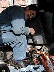 k日記エクアドル編 2000.6.13(火) 「朝、10時にココに来い」との整備士のオジさんのお誘いに、朝早く出かけて行く、うめちんと青山さん。整備工場で車の部品を持っていないために、部品の買い出し隊を命ぜられたのだ。 夕方、帰ってきた二人。「すごいよ、あの整備士。ものすごい早さで仕事しててさぁ。あの整備士が言ってたよ、僕は、エクアドルで初めてF1のカーピットチームに入った男だって」「・・・ほんと?それってすごいね」「うん、いい人だよ。腕も確かだし、・・・顔もかっこいいしね」そんな話を耳にしては・・・ふーん、明日は私も行こうかなぁ。 |