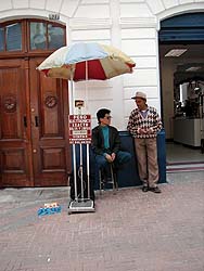 k日記エクアドル編 2000.11.23(木) アメリカ大使館へ行くが「今日は休み」と言われ、すごすご帰って来る。アメリカ大使館の前では、アメリカに対するストを行なっていた。「チャンチョ(スペイン語でブタの意味)、チャンチョ、チャンチョ」とリズムよく叫んでいた。でも、今日、大使館休みだから、そんなことしてもしょうがないのでは・・・と思いながらとぼとぼ宿への道をたどる。 そして、恒例の雨。大粒の雨が降ってきたかと思ったら、土砂降りになっていた。大きなゲーセンで雨宿りをしていたが、いつまでたっても止まない雨に痺れを切らし、ゲーセンを飛び出す。ついてない一日だ。 |