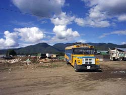 k日記グアテマラ編 99.10.21(木) 昼まで部屋でうだうだしていて、午後、音楽民族博物館に行ったら今日は、開いていた。竹の垣根の門をくぐるとこじんまりして、よく整備された感じのいい庭が現れる。芝生の緑が眼にまぶしい。庭を横切り博物館のドアを引く。何処からともなく軽快な音楽が流れてくる。今までに聞いたことのないメロディーだった。眼には色鮮やかなグアテマラレインボーが飛び込んでくる。 館内は、ウイピルを着たおばさんが説明してくれる。私達を見て「スペイン語と英語しかできませんが、どうしますか?」としきりに言葉の心配をしてきてくれる。「英語でOKです」と言うとにほっとして説明を始めた。 ギターやバイオリン、フルート、太鼓など植民地時代に入ってきたものが多かったがマリンバ(木琴)が植民地時代より前からここで演奏されていたというのは、初耳だった。細かい説明で見てまわった後、スライドを見せてくれる。風景写真や人物写真、バックで流れる楽器の音、とても素敵なスライドだった。売店で、高かったがビデオテープを購入。テラスで綺麗な庭を見ながら、無料のコーヒーを飲む。ホッと心が和んでくる。 そう言えば、グアテマラコーヒーって有名だっけ?と、売店にコーヒーの種が打っていたなぁと思い起こし、買いに戻る。日本でもコーヒーって育つのか?と思ったが、コーヒーの花は、とても強いらしい。年に3回も花をつけ、その度に身をつけるらしい。この1袋でうまく育てば3kgのコーヒーが収穫できるらしい。「日本にうまく持ち込めればいいお土産になるね」なんて話ながら、音楽博物館を後にする。こじんまりとはしていたがなかなか楽しい博物館だった。 街をぶらつき、インターネットカフェへ向かうが満員。仕方ないので近くのお土産物屋さんを覗くことに。大きな古めかしい門をくぐると、薄暗い暗い、体育館か倉庫のような高い天井とだだっ広い空間が現れる。眼が慣れてくるとだっだぴろ空間に色とりどりのウイピルや織物、刺繍製品がびっしり並んでいる。すごいの一言。人も閑散としているのがまたいい。ゆっくり見れる。いろんな地方のウイピルが売られているがとてもすばらしいものばかり。やはり値段もすごいの一言。その一角に機織道具が売っている。買って行こうか?と思ったが織り方が分からない。だいぶ興味を引かれたが、しばらくここにいるので買おうか買わまいか考えることにして、土産物屋を後にする。 カツなんて・・・こんなところで食べられるとは。「おいしいソース知ってんですよ。今晩、カツしません?」と宿の住人と夕食をシェアする。いや、本当においしかった。日本人が多いって素敵!と幸せな気分でいろいろな話に花が咲き、今日も夜がふけて行く。 |