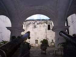 k日記グアテマラ編 99.10.22(金) スペイン語を習おう。習った物は身になるから、損はないよ。と言うことでスペイン語学校を探しに出かける。 ツーリストインフォメーションや宿の住人の話から、日本人経営のアタバルに決める。どのくらいやる?1週間じゃ身にならないよね・・・じゃあ、1ヶ月くらいやるかぁ。と、アンティグアに1ヶ月滞在する予定になる。1ヶ月もやればスペイン語、話せるようになるかね?即、実践だからしゃべれるようになるって、とお気楽極楽の梅ちんは言う。語学苦手な私でも?と聞くとそうだなぁ・・・なんとかなるって。ホント楽天的でいいよね。学校に行って聞いてみると結構習っている人が多く来週の予定が立っていないので明日電話連絡受けると言うことで学校を後にする。 ホテルへの帰り道に武具博物館があるので寄って行くことにする。スペインの植民地時代の大砲や職人道具、拷問部屋など、ここも音楽博物館同様こじんまりとした博物館だ。見学中に拷問部屋と棺おけが展示されている部屋を覗いて嫌な気分になる。なぜか何100年もたっているのに、そこだけ異様な臭いを放っている。梅ちんはその気があるのか「拷問部屋だ−」と、うはうは眺めていたが、私は気分が悪くなりそうそう退散。見ないの?と梅ちんに誘われたがもう一度見る気にはならなかった。 宿で夕飯を待っている人がいるので材料を買って暗くなる前に帰る。今日は、ハンバーグだ。つなぎが少なく形が崩れてしまったが、うまいうまいと食べてくれたのでとてもうれしかった。明日は、何を作ろうか?と今からいろいろ考えをめぐらすが、作るのがめんどうくさいと思ってしまう。多分、明日は、パスタだな。 |