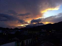 k日記グアテマラ編 99.10.23(土) 特に何もない日。街をぷらぷら歩いていたらメキシコ日本人宿アミーゴであった友人に出会う。そのまま3人でぷらぷらしてホテルに帰ってくる。しばらく話に花が咲き、ふと気がつくともう辺りが暗くなっていた。朝、えびを手に入れたので夕飯はエビチリと決めていたので、友人に別れを告げて急いで買い物に行く。 アンティグアの夜は早いので7時を過ぎるとバーとレストラン以外はほとんど閉まってしまう。ましてやコンビニなんてあるわけない。 めちゃくちゃ辛いエビチリが出来がった。火を吹かんばかりに辛い。何でこんなに辛くなったの?と調味料を混ぜた梅ちんに聞くとマリンシャープ(チリアバネロ)をしこたま入れたらしい。ビンを見ると3cmくらい減っている。辛いはずだ・・・梅ちんに重要な事を任しちゃいけないってうどんのときに心に誓ったじゃないか。なんで同じ失敗を繰り返すんだ!と食べながら何度も悔やんだが、後の祭。食べるしかない。ヒーヒーいいながら食べた後は、しばらく何を食べても味がしなかった。 しばらくぶりに熱いシャワーが出たのでお湯が出なくなる前に浴びて幸せ気分で床に着く。 |