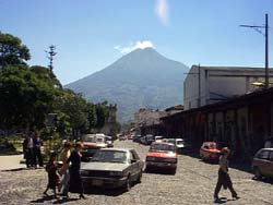 k日記グアテマラ編 99.10.25(月) 珍しく、朝早く起きてみた。外を見るとものすごく空が青く澄んでいた。風が吹くとひやりと寒くなんだかから寒い。屋上に登って見ると珍しく火山と富士山型の山が雲一つなく見えた。すばらしい。 ふと階段の方を見るとビールのビンが置いてある。これは・・・捨ててあるんだろうと拾ってくる。部屋に帰る途中にまたまた2本ビールビンが捨ててある。これは・・・と思い拾ってくる。 そのビンを持って朝ご飯を買いに出かける。早起きは三文の得。今日の朝飯は、ビールビンですべて出てしまった。と言うのは、ビールを買うときにビン代としてQ4上乗せで払い、ビンを返すとQ4帰ってくる仕組みなのだ。結構、知らない人が多くてそこいら辺にごろごろ捨ててある。そのビンを拾って商売している人達もいるくらいだ。 山は見れたし、朝ご飯はタダだったし・・・いいスタートだ。 今日からスペイン語学校が始まった。1日4時間の長丁場だ。授業始まって10分・・・帰りたくなってきた。スペイン語でスペイン語を教える理解を越えた授業と、どんどん先に進んで行く速さにこれから4時間もついて行けるのだろうか?と不安になり「2時間の授業で十分です」となんど言おうと思ったことか。涙が出るくらいしんどかったです。 終わって見ると復習することがたくさんノートに書いてある。明日までにこんなにたくさん覚えられるのだろうか?それより明日も学校かぁと思うとブルーな気分になってしまった。 だいぶ思ったのだが、語学ばかの私だが、こんなに覚えが悪かったか?いや、覚えが悪くなったみたいだ。考えてひらめいたりすることも少なくなったような気がする。人間、頭を使わないと、どんどんそうなって行くのか?またまた不安になってきた。 |