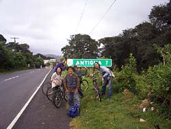 k日記グアテマラ編 99.11.7(日) アンティグア富士山に登ろうと思ったが大統領選でバスがあまり走らないと言うので山登りをあきらめる。さて、どうしようかと悩んだ末に自転車でサンルーカスへ行くことに決まる。 レンタル自転車屋に行くが自転車は品切れ午後2時に自転車が戻ってくるから、後で来いとのこと。しょうがないのでコーヒーを飲みながらひまをつぶす。 午後2時すぎ自転車を借りやっと出発。走り始めて、やめればよかったと後悔する。緩やかな坂道が延々続く。どこまで行っても坂道で下りも平地もちっともない。しかも、なんだか空行きが怪しくなり、とうとう雨まで降ってくるしまつ。一方通行なので戻るわけにも行かず、結局2時間かけて上まで登りきってしまった。 あんなに登ったのに帰りはわずか15分。行って帰って約14kmの道のりを2時間15分で走破。自転車を返したときには、パリパりに足が突っ張っていた。サドルにあったっていたところも打撲したようにいたく、まともに歩けない。年くったせいか、運動不足なのか、だいぶ体力が落ちてるなと実感した瞬間だった。だが、いっしょに走った70代のおじさんは、全然平気だったので年のせいじゃないみたいだが・・・。 ホテルに帰って、ベットに横になりたかったが、先日、おごって頂いた方達といっしょにご飯を食べる約束をしていたのを思いだし、のそのそ立ち上がりペンション田代に行くことに。 今日のメニューは、ビビンバとプルコギ、韓国風味噌汁にから揚げ。どれもこれも唐辛子とにんにくがすごく効いた韓国ヨンスン定食。めちゃくちゃ辛く、汗をかきかきたくさん食べた。でも、おいしかったのだ。 |