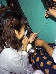k日記グアテマラ編 99.11.8(月) 昨日の疲れからか昼頃までぐっすり熟睡してしまった。朝ご飯を食べ出かけてみるが、インターネットカフェは満員、航空会社は、シエスタで4時にならないと開かない。終いには、ちょっとしたことで梅ちんとけんか。結局、行くところもなく、気まずい雰囲気のままホテルに帰ってきてしまった。 二人で無言のままもくもくとパソコンに向かう。 トントンとドアをノックする音が聞こえる。誰だろう?とドアを開けるとメキシコの日本人宿アミーゴの管理人さんだった。そうだ、ミサンガのつくりかた教えてくれって頼んだんだっけ・・・頭に来ていて忘れてた。わざわざ部屋まで来てくれたなんて、ありがたいので早速、教わることに。 まず、糸を適当な長さに切って、それから・・・約1時間後、歪なミサンガ、1丁上がり。途中、肩が凝ってもう勘弁とちょっと思ったが、歪でも出来てみるとなんだかうれしい。次ぎも作って見たくなる。今度は、梅ちんの首輪でも作って見ようかなぁ、喜んで着けてくれそうだ。 とても感動を与えてくれた歪なミサンガだが、ヨンスンが思い出にと韓国のピンバッチをくれたので、お返しにあげてしまった。こんな出来そこないのお返しでいいのか?と相当悩んだが、すごく喜んでくれたのでまあいいことにしようと思った。 アンティグア最後の夜は、こんこんと深けて行く・・・。 |