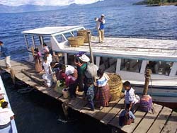 k日記グアテマラ編 99.11.12(金) 非常に天気がいい。空は青く澄み渡り、山の緑も鮮やかに、湖も静かだ。こんな日は、船に乗ろう。気持ちいいに決まってる。と言うことで、サンチアゴ・アティトランと言う村へ船で向かう。 中型のフェリーがゆっくりと緑の水面を走る。遠くを見ると何処までも水面が続いている。ホントに大きな湖だ。 サンチャゴ・アティトランは、インディヘナ最大の村落らしく綺麗なウイピルを着ている人が多数、綺麗なウイピルを作っている人多数。ただ、残念なことに観光客なれしてしまっていて買い物するのに値段を聞くと、法外な値段しか言ってこない。どう聞いても法外な値段なので安くしてくれと粘っても全然安くならない。これじゃ、買えない。 船も同じだった。だいぶ法外な値段を言ってくる。周りの現地人に聞いても同じことを言う。現地人と同じ値段ならしょうがないとお金を払い乗りこみ、出発すると現地人のお金を徴収し始める。よく見てると私達の3分の1の金額しか払っていない。「それって、おかしいじゃない?」と抗議すると「あいつらは、毎日乗ってるから安い。あんたらは、ツーリストだから高い」と抜かしやがる。それにしたって取りすぎだと思う。しかも、みんなで口裏を合わせるところが汚い。始めからそう言えばいいじゃない。 今日は、だいぶ、ここの人達が嫌いになった。 |