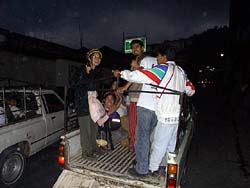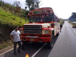 k日記グアテマラ編 99.11.16(火) 梅ちんの熱もめでたく下がって、昨日パナハチェルにやってきた旅人達とケツァールテナンゴ(地元民は、シェラと呼ぶ)へ。ダイレクトバスを捕まえ約3時間。 ヘアピンカーブをいくつもいくつも曲がりどんどん山を登って行く。頂上近く、とうとう雲の中に突入。視界は真っ白、寸分先はもしかしたら断崖絶壁。それでもスピードは緩めない、つわものの運転手。下りになると、ますます快適にスピードを上げる。 標高が高いせいか窓を開けてると寒い。寒いので窓を閉めるといつのまにか勝手に開いている?窓押さえが壊れてるらしい。山間にシェラの街が見えてくる。と、何の変哲も無い路肩でバスが止まった。いつものように人を乗り降りさせるために止めたのかと思ったが、誰も降りないし誰も乗ってこない。なんだ?追剥ぎか?と思ったが、すぐ走り出した。でも、ガリガリキキーとバスが悲鳴を上げている。程なくバスダウン。 どうしたんだ?と運転手に聞いて見ると「ガスケツだ。すぐ出発するから待っていろ」だそうだ。でも・・・ガソリンスタンド無いし、すぐって言ってもねぇ、予備のガソリン無いみたいだし、いつ出発するかわからんなぁとその辺を散歩。ガソリン買いに行くのかな?なんて思ってたら、シェラから登ってきたバスからバケツにガソリンをもらってせっせと自分のバスに入れていた。程なく、出発、シェラに無事到着。 バスを降り、荷物を受け取りふっと一息ついていると、グアテ人がふらふら寄ってきて「パナハッチェル行くか?」とグットタイミングで聞いてくる。本人は、客引きに必死のようだが、私達には、ナイスジョークに聞こえてしまう。うはうは笑って行かないと答えると変な顔をして行ってしまった。 バスターミナルの劇的に安い昼飯を食べて、セントロへのバスに乗る。ガイドブックに載っている宿に行ってみたが改装中で泊まれず、仕方がないので安い宿を探すことに。程なく、今日の安宿決定。その名も「ホテル・ケツァールテナンゴ」。 荷物を置いてすぐ温泉に出発。バスで行こうとバスを待ったが、やっときたバスは、満員で私達の前を素通り。次ぎに来たピックアップトラックに乗車。なかなか快適だが、走っているうちに寒くなってくる。 10分も走っただろうか、ほのかに温泉の臭いが漂ってくる。山を一個越えたところにアルマロンガという村がありその先にバーニョ、いわゆるクアハウスみたいな温泉が数件固まってある。日本で言えば温泉街ですな。その一つで、宿のおかみさんお勧めのバーニョで降ろしてもらう。 ドアを開けると、熱気でめがねが曇る。入り口で金を払い、こっちだと手招きする方へ向かう。個室になっていて、のぞいてみると1.5畳分の浴槽に1畳分の洗い場と1,5畳分の着替え場所がついて、前の客が出た後らしく一生懸命浴槽を洗っていた。「ちょっと待ってろ」とお湯を浴槽にためている。 別の部屋をのぞいてみると3畳の浴槽、2畳の洗い場、1.5畳の着替え場がある大きい部屋もあった。 準備が整ったので、服を脱いで早速入浴。ちょっと白っぽいが臭いのしない単純泉らしいがとても熱く気持ちがいい。このときとばかりに体を洗いまくり、旅の垢をきれいに落とし、のんびり入浴。やっぱり日本人は、風呂でしょう。ほかほかになってお風呂を出た後、冷たいビールをきゅっと飲む。うまい。旅にでてこんな幸せ味わえると思わなかった。 身も心もさっぱり、ほかほかにあったまった。帰りもバスが無かったのでピックアップトラックに乗り山を越える。山の中腹からシェラの夜景を眺め、来てよかったと本当に思った。 |