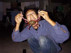 k日記ホンジュラス編 99.12.8(水) コンコン、コンコンとドアを叩く音がする。誰?と返事をすると部屋の掃除はどうするの今日も泊まってくの?とドアの向こうで大声で女の人がしゃべっている。時計を見ると朝の10時過ぎだった。今日も泊まるから掃除しなくてイイよと言う前にどこかのオヤジが「そこはチノの部屋だ。今日も泊まってくって言ってたぞ」と勝手に代弁してくれたおかげで、また眠りについてしまった。 昼過ぎもそもそ起きだして、街に出かける。道は狭く、ひっきりなしに車が走っている。やはり排気ガスが凄く嫌な感じだ。何処をどう歩っても嫌な感じのチノとかチニートいう言葉しか聞こえてこない。人々も何処か陰険な感じがする。 ホンジュラスのお金レンピーラがないので銀行へと向う。昨日、ホテルの近くの銀行でチェックを両替しようと銀行めぐりをしたが、ことごとく断られ最後の銀行で「チェックは、セントロのオクシデンテ銀行でしか取り扱ってないんです」だそうだ。と言うことで、セントロのオクシデンテ銀行に行ってみた。 100ドルのチェックしか持っていない私達は、ちょっと考えた。100ドル=1400レンピーラになる。でも、あとこの国に何日いる?そんなにレンピーラあってもしょうがないよと思い、ドル紙幣で30ドルだけ両替しようと思いとどまった。 紙幣ならと、目の前にあったロイズ銀行で両替できるか聞いてみると・・・天下のロイズ銀行がNOと答えた。じゃあ、オクシデンテ銀行に行くしかないのねとオクシデンテ銀行のカウンターでこれを両替してくれと30ドルだすと、あっさりとNOの答えが帰ってきた。なんで?と聞くと「ここでは両替はやってない。ここを出て左にあるって行くと両替できるところがあるからそこに行って」だそうだ。ここは、本当に銀行か?と疑問に思ってしまった。なんかたらい回しにされてない?とかホンジュラスの銀行は終わってるとかちょっと不機嫌モードで銀行を出たところになぜか都合よく両替商が立っていた。めんどくさくなったのでタイミングのいいこの両替商で両替してしまった。 よく見ると、銀行の周りにたくさんの札束を抱えたオジサンが銀行の方をうかがっている。結局、何処の銀行でも両替を断られオクシデンテ銀行にやってくるがこの銀行でも両替が出来ないでしかめっ面で銀行から出てくる輩がたくさんいる証拠だった。 懐もあたったまり、街をぶらつき一軒のコーヒー屋で一息ついて率直な感想「ここは、首都には見えないような街の作りだが、ちょっとセントロを離れると危険な匂いがするところと排気ガスだけは首都並みだ」と思った。 日が傾きかけた頃、私達はさんざんセントロを歩き廻り、排気ガスの臭いとつかれに支配されていた。 帰り道に大きなメルカドを発見したので疲れを押して夕食の材料を買って帰ろうと、大きなメルカドに入っていった。どこまで行っても洋服屋しか見当たらない。大きなおねえさんや服の山を押しわけ、ちょっと広い通りにでると今度は、靴屋の通りだった。 行けども行けども靴の山と大きく強そうなお姉さんばかり・・・腕をつかまれ「なにさがしてんの、買って!」と言われると一瞬たじろいてしまう。「いらない」とおじおじ言うと「なんで」と聞いてくる。腕は、放してはくれない。「だって、持ってるもん」と思い切り腕を振り払って逃げると、ぐはははと怪獣みたいに笑っている。こわかった。 そんな、恐怖の通りを抜け出すとやっと生鮮食料のコーナーに出くわした。野菜、くだもの、肉、魚、一通りのものが売っていた。今日は、何を食べようか?と悩んでいるうちに魚屋にであった。うめちんが立ち止まって見ている。横顔を見ると、魚をうらめしそうに見ている。ああ、今日は魚だなぁと思っていたら、案の定、値段を聞いて交渉していた。「ねえ、これムニエルみたいに焼いて食べようよ」と目が輝いている。これはもう何を言っても魚料理だなと思い、反抗するのを止めた。 金を払って小さくカットしてもらい魚を受け取り「さあ、帰ろう」とうめちんの方へ振り向くと、今度は大きな樽を覗きこんで気味悪いくらいにうはうは笑っていた。な、なに?と樽を覗きこんで理解した。たくさんの蟹がキシャーとはさみを上に突き上げてわさわさ動いていた。うめちんは、動く蟹がおもしろく見ていたが、おいしそうなので食いたくなったのである。予感的中!!彼は、早速、蟹の値段を聞いていた。「ねね、蟹汁にしよう。買ってイイでしょう」と絶対買うという顔で聞いてくる。そんな顔で聞いてこられたら反対しようがないので「買えば」とだけ答えたら、うれしそうに一番大きな蟹を選んでいた。 宿に帰るとフロントでジジイどもが飲んでいた。なぜか知らないがこの宿は、ジジイが多い。経営者も真っ白く色が抜けきった、そう、墓場から起きあがってきたような顔をしているジジイであった。最初、奥の部屋から出てくる彼を見て一瞬おじけずき、レセプショ