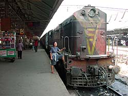 k日記インド編 2001.2.13(火) 朝夕、結構涼しいカルカッタ。夜などは寒いと思うほどの涼しさにちょっと面食らう3人。列車チケットセンターへ向かう途中、側溝から湧き出した水で歯を磨いている女性を発見。目を見張る。無事、チケットを取り、その足でフーグリー川を渡し舟で渡り鉄道駅に足を伸ばす。入場料も払わず、駅構内を見学。時刻表を買って、船に乗って帰ってくる。帰り際、チベット料理のモモ(餃子)を食べて感動。もう一皿!追加で食べる。朝、歯を磨く女性がいた側溝に今度は、体を洗う女性を発見。またまた目を見張る。どうなってるんだこの国は・・・疑問に思う。 ふらふらと露店を冷やかしながらぶらぶらする。そして、ニューマーケットに突入。ここは、非常にでかいダンジョンだという、うめちんと雀士。なんで?何を探してるんだという変な日本語を話す客引きモンスターがたくさんいて、買い物の邪魔をするんだよ。2階にはあんまりいないんだが、地下にもぐるほど、強い奴が現れるんだ。で、一周してくるとレベルがガンと上がって、レベルが上がると「これ、いらない」とか「無視する」とか「ノーサンキュー」とか「ついてくるな」とか言う魔法を覚えられるんだよ。ちゃんと買い物もできるって寸法さ。なるほど・・・ダンジョンに足を踏み入れる。彼らの言うとおり、うるさいモンスターがうじゃうじゃいておちおち買い物もできず。結局、何も買わなかった私。おまけに、いつからここに吊るしてあるんだこのパンジャビードレスはと言いたくなるような薄汚れたものを平気で進めてくるアクドイ商人モンスターがたくさんいた。観光客ズレした商人モンスターと無理やり安値で売りさばこうとする客引きモンスターの間で喧嘩まで発生している始末。ここで、買い物するにはレベル100くらいないと・・・ |