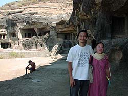 k日記インド編 2001.2.23(金) 乾いた大地を走るバス。遠くには、円錐形の大きな山らしきものが見える。ガイドに載っていた砦らしい。狭い石の門をくぐるとたくさんの砦が現れ、先ほどの円錐形の砦の圧倒的大きさに目を見張る。斜面に小さく階段があり、山の天辺に見晴らし塔が見える。登れるらしいが、この炎天下のなか登るのは・・・という感じである。 円錐形の砦をぐるっとまわり猛スピードで山道にさしかかるバス。急カーブには倒れそうなほどのスピードに体を揺られ続けること、30分。エローラ石窟前に到着。あの猛スピードで思ったより早く着いた。炎天下の中にほおり出される二人。容赦なく照りつける日光のもと、石窟に向かって歩き始める。入り口から右の方へ向かい第1窟からみることにする。日差しをさえぎるものは、ちょっとした木陰と石窟の中のみ。石の照り返しも激しく、体調の悪い私は、すでにばて気味。やっと第一石窟にたどり着いた時には、その場に座り込んでしまった。彼らは、なぜこんなところに同じものをたくさん作ったのか?岩壁にぽっかりと開いた石窟の中は、奥に行くほどひんやりと涼しく、座ると石の冷たさが伝わってくる。一番奥の部屋には石像が静かに腰を下ろし安らかな目で私たちを見据える。どの石窟もそんな感じだった。 第16窟のカイラーサナータだけは外人が入場するのに一人450ルピー(10ドル)もの大金をとる。そんなの払いたくない私たちは、カイラーサナータの脇から崖を登る。次第に石の尖塔が見え、カイラーサナータの全体が見えてくる。そのすばらしい彫刻に圧倒される。こんなものノミだけで作ってしまうなんて・・・宗教を信じるということは、こんなものまで作り上げてしまうのか?宗教というものが、恐ろしく感じた。 エローラ石窟唯一のレストランで昼ご飯を食べた後、入り口から左のほうの29窟を見に行く。先ほどより日差しがきつく感じられる。すでに肌はぱりぱり、唇はがさがさになっている。石窟の中も、もはや涼しくはなかった。むわっと熱気が立ち込めている。第29窟は、今まで見た石窟のどれよりも大きなものだった。中央の祭壇に白と黒の垂れ幕がかけられ未だに信仰の跡が見受けられる。石像も大きなものが多い。そのまま、裏道を通って、第28窟を見る。左側の第17窟〜第29窟は、遠いからか?あまり人がいなく、管理のおじさんも見当たらない。のんびりと第25窟あたりまで見ていたが、同じようなものばかりなので、そのまま崖を下り入り口への最短道路を歩く。途中、前方をピヤーと何かが横切っていく。なんだ?と行く手に目を向けると土手の上の民家に3匹の白い猿が座っていた。そして、おもむろに窓を押し開け、何かまさぐって、何かを口に運んでいる。しばらくするとぽかーんと口を開いて見ていると、そのまま民家に入っていってしまった。いいのかな?猿ども・・・ゆっくりと歩き出す。 入り口にも大量の猿がいた。人間に臆することなくどうどうと座って毛繕いしたり、窓のあいた車に乗り込み運転席に座って休んだりしている。写真を撮ろうと近づくとフギーと歯をむき出して威嚇してくる。かわいいがちょっと憎たらしい。 西日が乾いた大地をオレンジ色に照らす。乗合ジープにぎゅうぎゅうに押し込まれ、エローラ石窟を後にする。乾いた風が肌、喉にまとわりつく。ああ、冷たい水が欲しい・・・ |